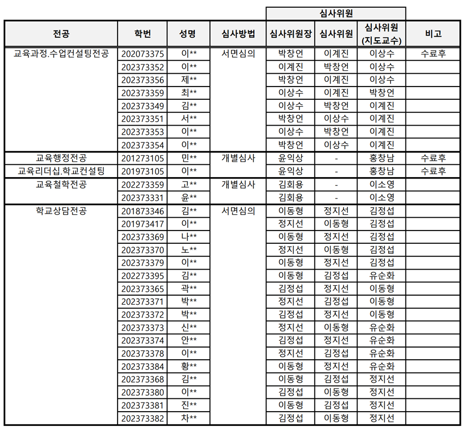 <2025학년도 2학기 교육대학원 특수연구(무논문) 심사일정 및 심사본 제출일 안내>